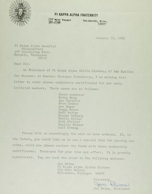 Epsilon Psi Chapter was founded at Western Michigan University on April 27, 1963. The chapter closed in 1996 and reopened in 2014.